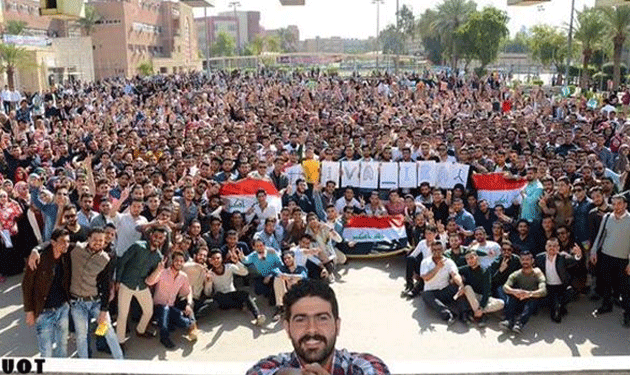 طلاب الجامعة التكنولوجية في بغداد اجتمعوا بأعداد كبيرة والتقطوا صورة جماعية حاملين العلم العراقي ولافتات تدعم الجيش والقوات الأمنية والحشد الشعبي في الحرب ضد “داعش”. والتُقطت الصورة بطريقة “selfie” لتكون الأكبر من نوعها في العالم.