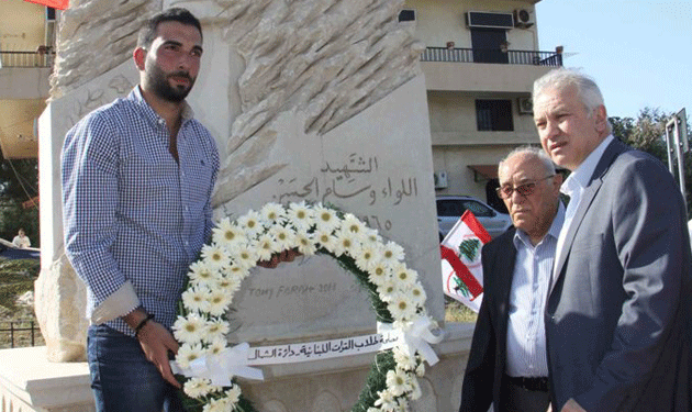 كلام كرم جاء خلال وقفة أمام نصب اللواء الشهيد وسام الحسن عند مدخل بتوراتيج الكورة حيث وضع إكليلاً من الزهر على النصب.