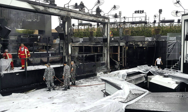 بالصور.. حريق ضخم في Sky Bar May 28, 2015 07:23 AM وكالات ذكرت قناة الـmtv ان حريقا ضخما اندلع ليلاً داخل مبنى “سكاي بار” Sky Bar، الذي يعدّ من أهم الملاهي الليلية في بيروت، وقد تمكّن فوج إطفاء بيروت من السيطرة عليه، والعمل على تبريد المكان وتأمينه. يذكر أنّ أسباب الحريق لا تزال حتى الساعة مجهولة.
