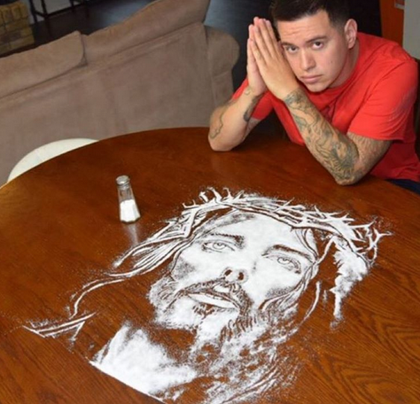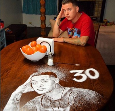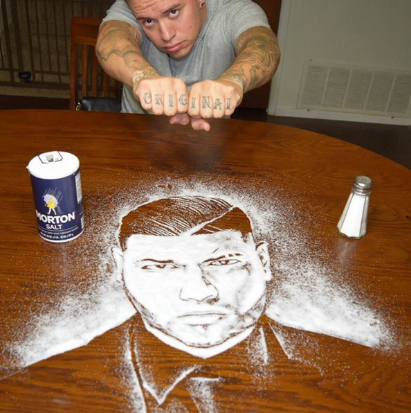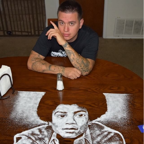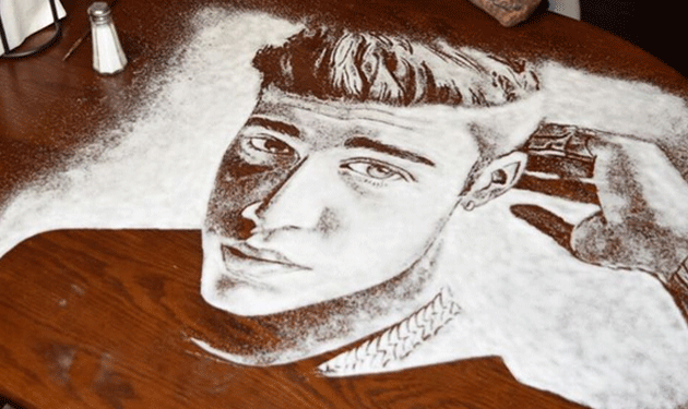 نشر الفنان المكسيكي الشاب روب فيريل على حسابه عبر موقع “إنستغرام”، صوراً له بينما يرشّ الملح على الطاولة الخشبية ليخرج في النهاية بلوحات فنية بالغة الدقة.