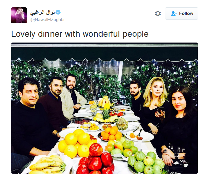 بالصورة… نوال الزغبي مع “أناس رائعين”! December 23, 2016 07:41 PM وكالات نشرت النجمة الذهبية نوال الزغبي، عبر حسابها على موقع “تويتر”، صورة خلال عشاء مع أصدقائها، وعلقت عليها قائلة: “عشاء رائع مع أناس رائعين”.