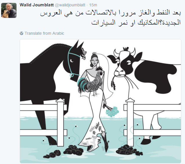 من هي عروس جنبلاط؟ January 6, 2017 04:37 PM وكالات غرّد رئيس “اللقاء الديموقراطي” النائب وليد جنبلاط، قائلاً: “بعد النفط والغاز مرورا بالاتصالات من هي العروس الجديدة الميكانيك او نمر السيارات؟”.