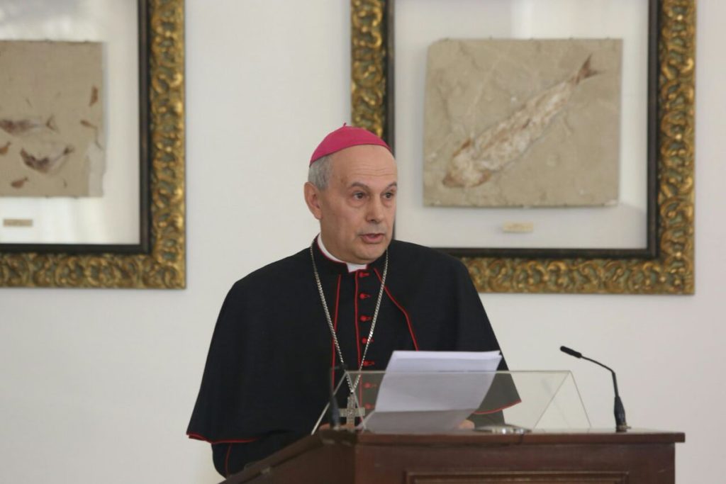 السفير البابوي أضاف: ” نهنئكم على اولى زياراتكم الى الخارج، وقد تمت بروح من التفاهم ووفق ارادة الحوار ونشكر بلدكم على تحمّله العبء الثقيل في استقباله العدد الكبير من اللاجئين ونأمل أن تتيح لهم الاوضاع الاقليمية العودة الآمنة”.