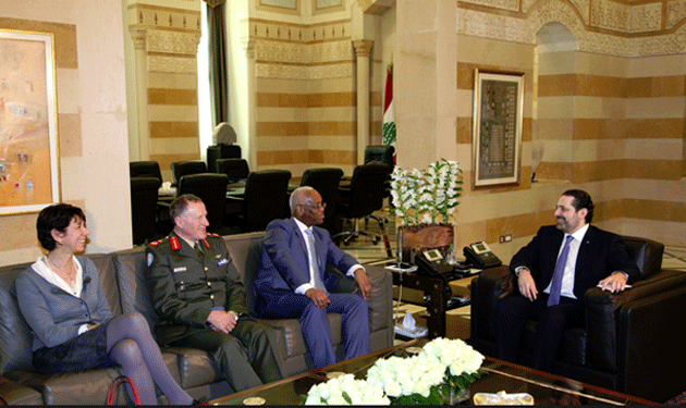 استقبل رئيس مجلس الوزراء سعد الحريري في السراي الحكومي وفد الامم المتحدة الذي يزور لبنان حاليا لاجراء مراجعة استراتيجية لليونيفل برئاسة مساعد الامين العام لعمليات حفظ السلام القاسم وين الذي قال بعد اللقاء: