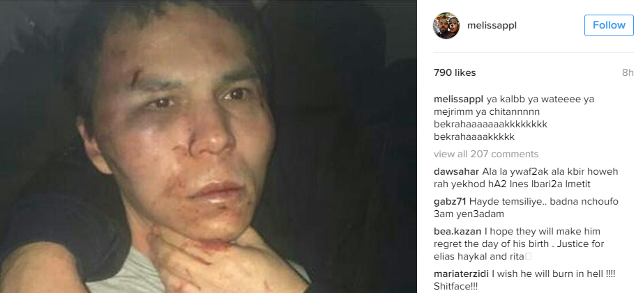 نشرت ميليسا بابالاردو الناجية من هجوم ملهى “رينا” في اسطنبول على “انستغرام” صورة لمنفّذ المجزرة بعد اعتقاله، وعلقت عليها قائلة: “يا كلب، يا واطي، يا مجرم، يا شيطان، بكرهك”.