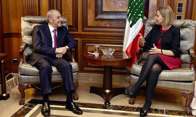 أشارت المفوضة العليا للسياسة الخارجية والأمنية للاتحاد الاوروبي فيديريكا موغيريني الى انها بحثت خلال اللقاء مع الرئيس نبيه بري في عين التينة، في العمل الجاري لإنجاز قانون للانتخابات النيابية وإجراء هذه الانتخابات.