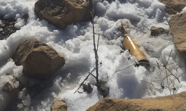 بالصورة … قذيفة هاون في أحراج كفرحونة January 29, 2017 06:41 PM وكالات اشارت “الوكالة الوطنية” الى أن متنزهين على الثلوج في منطقة أحراج كفرحونة، عثروا على قذيفة هاون 60 ملم من مخلفات الاحتلال الاسرائيلي للمنطقة، غير منفجرة، فتم على الفور إبلاغ الجيش، وحضرت دورية من فوج الهندسة نقلت القذيفة من مكانها.
