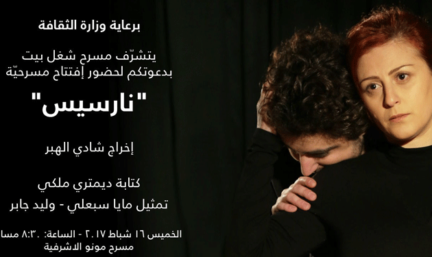تعرض على مسرح مونو – الأشرفية بدءا من 16 شباط الحالي مسرحية “نارسيس” من اخراج شادي الهبر وتأليف ديمتري ملكي، تمثيل مايا سبعلي ووليد جابر.