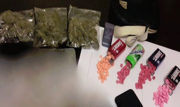 وقد عُثر في داخل سيّارته على كميّة /77.6/ غ. من مادة الماريجوانا المخدّرة موزّعة داخل ثلاثة أكياس نايلون متوسطة الحجم، وخمس عبوات تحتوي على /258/ حبة من أنواع مختلفة من الحبوب المخدّرة.