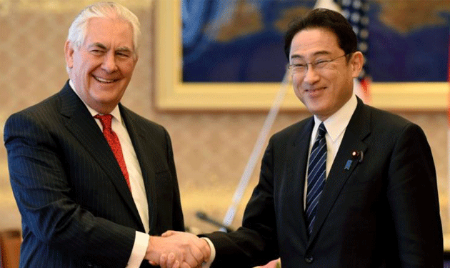 يلتقي وزير الخارجية الاميركي ريكس تيلرسون اليوم الخميس 16 آذار في طوكيو وزير الخارجية فوميو كيشيدا ثم رئيس الوزراء شينزو آبي في اطار زيارة لطمأنة القادة اليابانيين بشأن دعم واشنطن في مواجهة التهديدين الكوريين الشماليين البالستي والنووي.