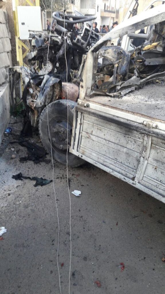 في المقابل أشار حساب “الاعلام الحربي” عبر تويتر، الى ان سوريين اثنين من تنظيم “داعش” قتلا واصابة ثالث بجروح بالغة جراء انفجار وقع في سيارة “بيك آب” قرب المفخر القديم وسط عرسال شرق لبنان.