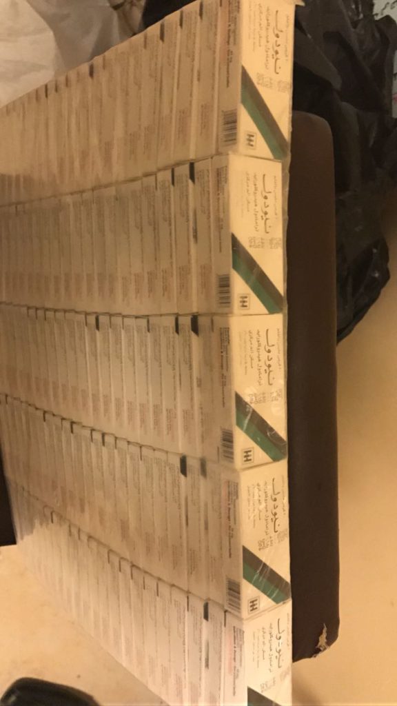 بتفتيش منزله الكائن في محلة الزاهرية، عُثر في داخله على /3040/ حبة من الدواء المذكور، واعترف بأن مصدر هذه الأدوية هو أحد أقاربه ويعمل صيدلي، ويدعى: