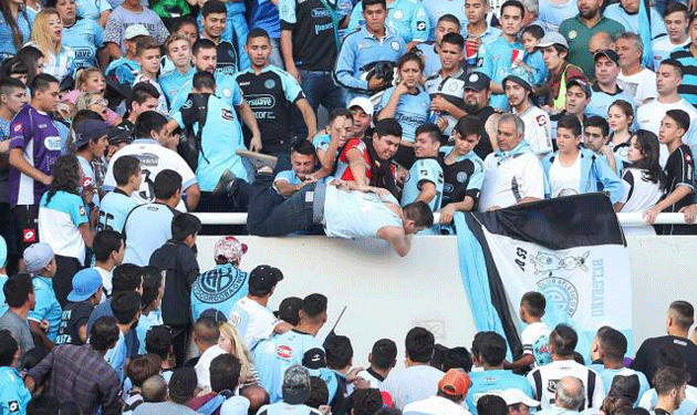 وأظهرت مقاطع فيديو، أن بالبو كان يحاول الإفلات من عدد من مشجعي نادي بلغرانو تعرّضوا له بالضرب، قبل أن يلقوا من الأعلى.