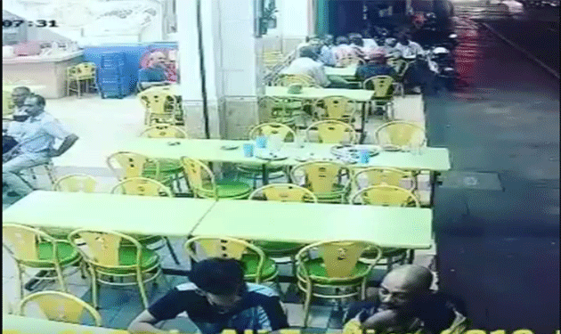 إنتشر على مواقع التواصل الاجتماعي فيديو لحادثة كادت تودي بحياة شخصين لا ذنب لهما سوى انهما في المكان والزمان غير المناسبين.