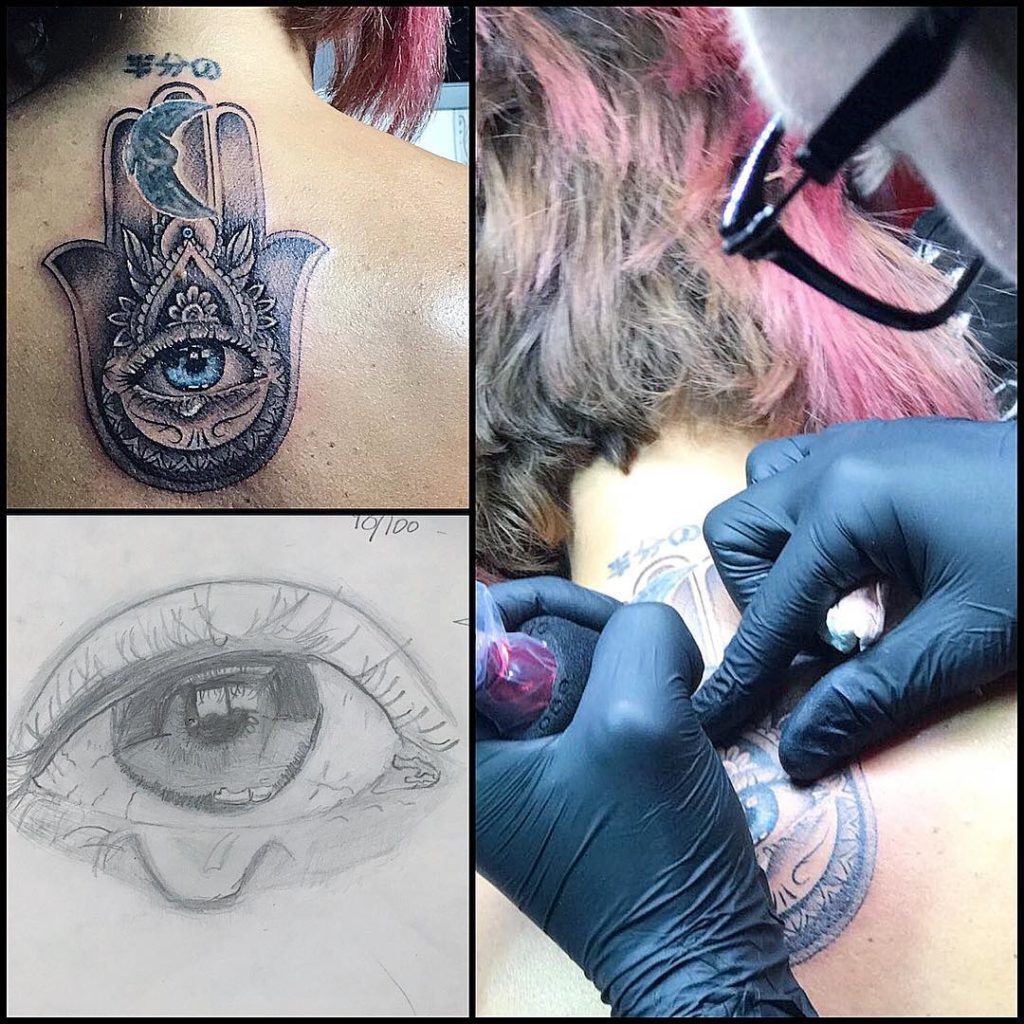 وشاركت الاخيرة، معجبيها على موقع “انستغرام” صورة أظهرت فيها وشمها الجديد وهو عبارة عن عين تتوسط كفّ يدٍ، وعلقت عليها قائلة :” شكراً لفنان التاتو الرائع الذي نقش الوشم الذي رسمه فهودي”.
