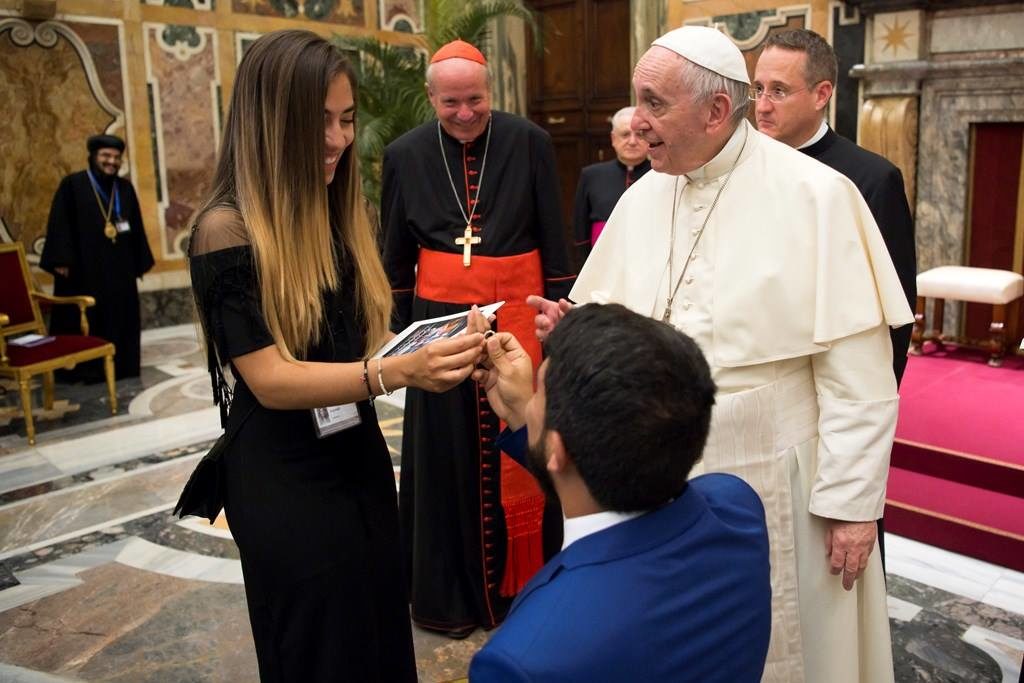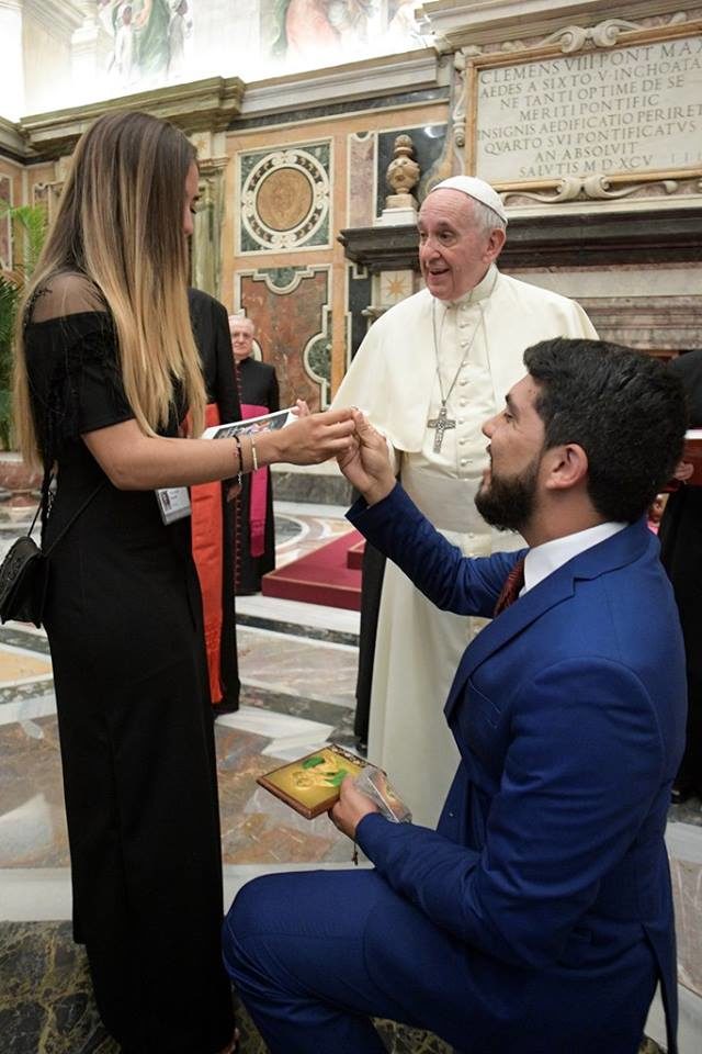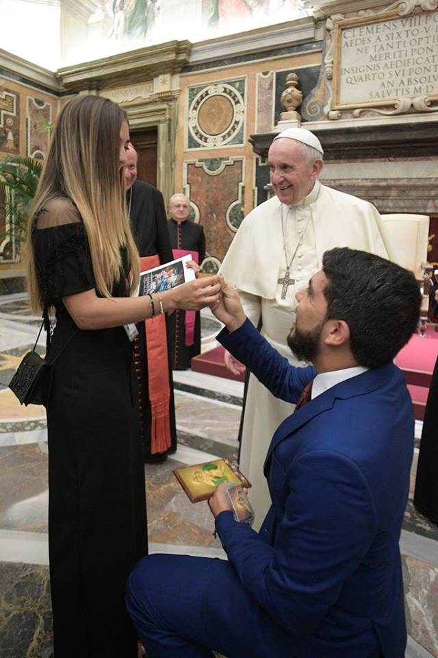 ركع نائب فنزويلي امام صديقته ليطلب يدها للزواج مباشرة امام البابا فرنسيس الذي كان يستقبل وفدا برلمانيا كاثوليكيا على ما ذكرت وسائل اعلام ايطالية.