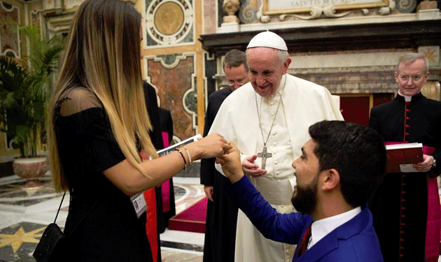 واظهر شريط فيديو بثه موقع صحيفة “إل فاتو كوتيديانو” ان طلب الزواج هذا اثار موجة تصفيق في صفوف الحضور امام البابا الذي فوجئ في البداية ومن ثم ابتسم الى الشابين وحياهما.