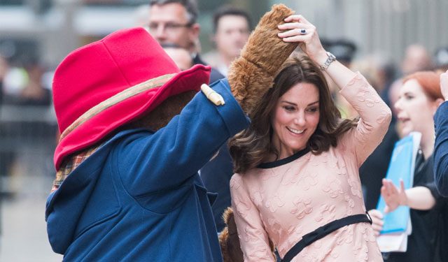 أسعدت الأميرة كيت، دوقة كمبردج، الأطفال برقصها مع الدب بادنغتون مواصلة مهامها الرسمية بعد تعافيها من متاعب الحمل.