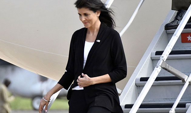 ووصلت هايلي على متن طائرة عسكرية يرافقها وفد يضم اكثر من 30 شخصا.
