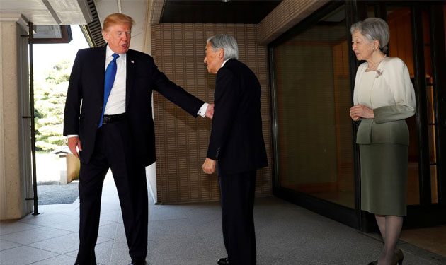 التقى الرئيس الاميركي دونالد ترامب، اليوم الاثنين، امبراطور اليابان في طوكيو في محطة تعثر فيها سلفه باراك اوباما بسبب البروتوكول المرتبط بمسألة الانحناء او عدم الانحناء امام اكيهيتو.