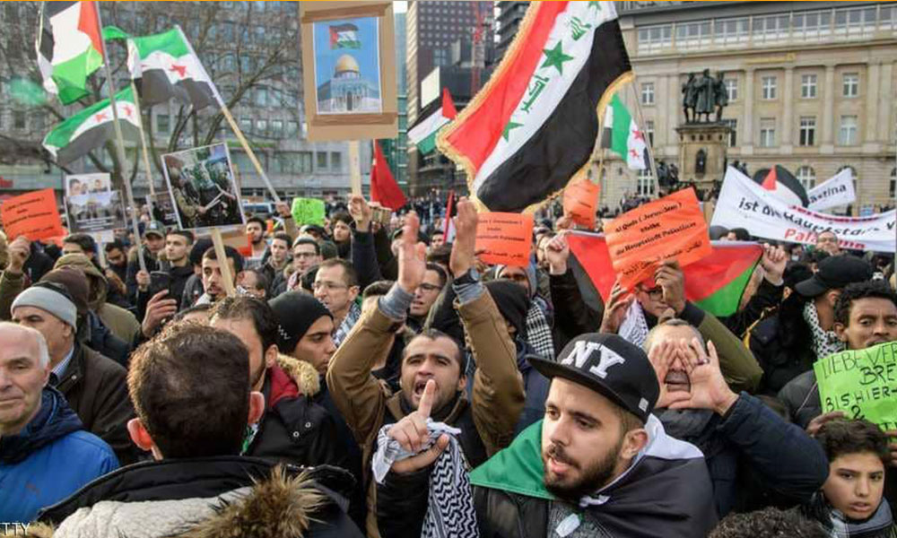 شارك نحو ألف شخص في مسيرة في فرانكفورت، السبت، للاحتجاج على قرار الرئيس الأميركي دونالد ترامب الاعتراف بالقدس عاصمة لإسرائيل.