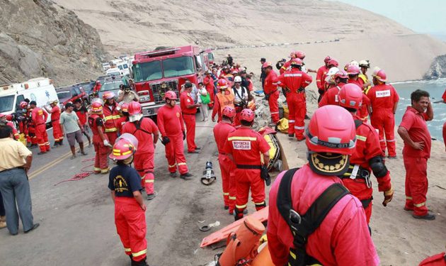 واصل رجال الانقاذ انتشال جثث ضحايا حادث سقوط حافلة فوق شاطئ صخري الذي اسفر عن سقوط 50 قتيلا على الاقل في البيرو.