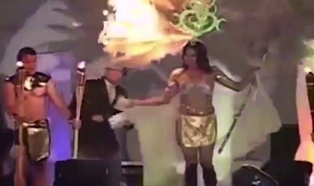 وظهرت ملكة جمال السلفادور، والتي تعمل عارضة أزياء، في مقطع الفيديو، والنيران تشتعل في التاج فوق رأسها واندلعت النيران في ريش التاج.