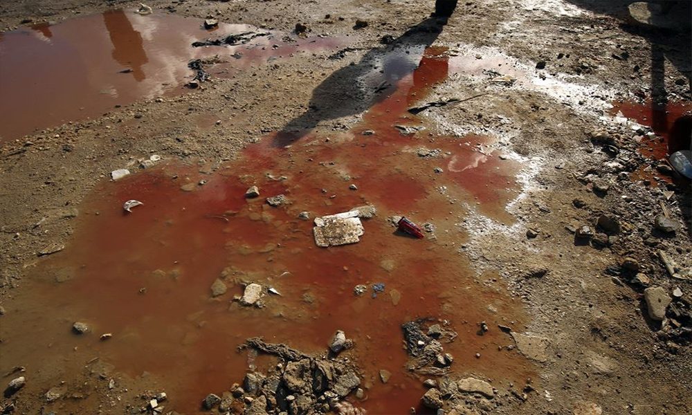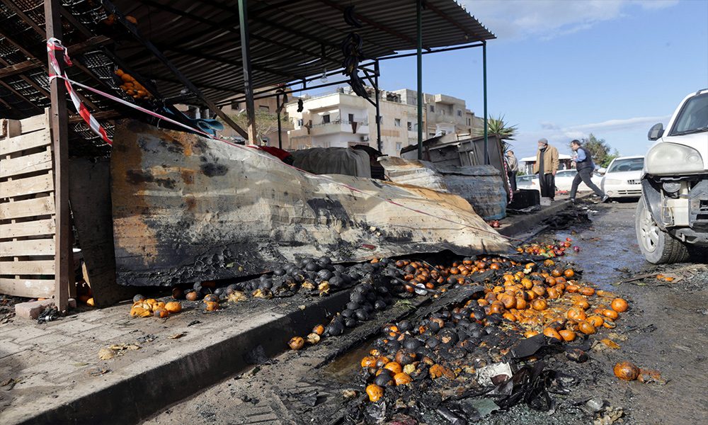 وأظهرت الصور المتداولة على مواقع التواصل الاجتماعي والوكالات من مكان الحادث، الكثير من الدماء وهي تغطي مساحات واسعة من الأرض، فضلاً عن آثار الأضرار الكبيرة التي لحقت بالسيارات المتوقّفة بالمكان ودمار المباني.
