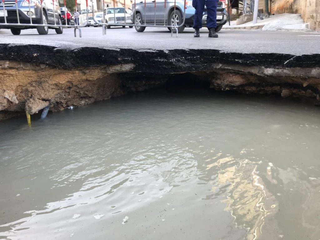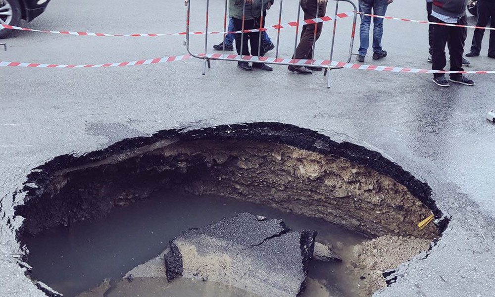 انتشر عبر مواقع التواصل الاجتماعي عدد من الصور لحفرة مياه كبيرة في زحلة يبلغ قطرها نحو المترين نتيجة انهيار الطريق.