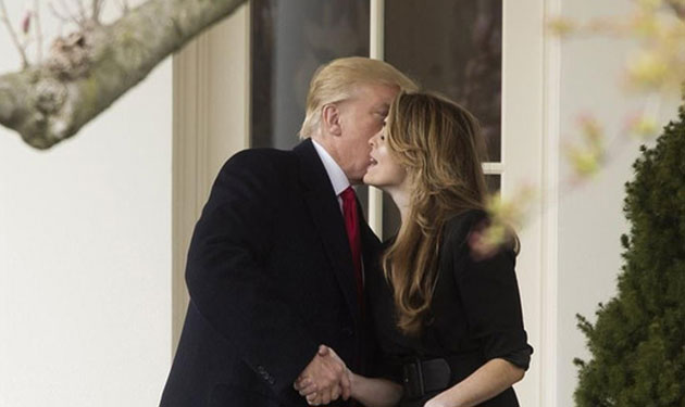 ظهر الرئيس الأميركي دونالد ترامب، وهو يودع مديرة اتصالات البيت الأبيض المستقيلة، هوب هيكس، وداعاً حاراً بقبلة على وجنتيها، وهو تكريم لم يحظ به الكثيرون ممن غادروا البيت الأبيض خلال الأشهر الأخيرة.
