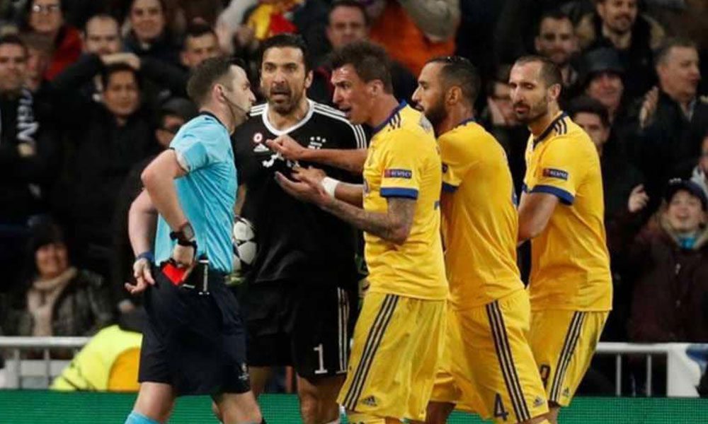وتعرض الحارس المخضرم، للطرد اعتراضًا على قرار الحكم الإنكليزي مايكل أوليفر، باحتساب ركلة جزاء لريال مدريد سجل منها هدفه الوحيد، الذي أطاح بالسيدة العجوز من دور الثمانية لدوري أبطال أوروبا.