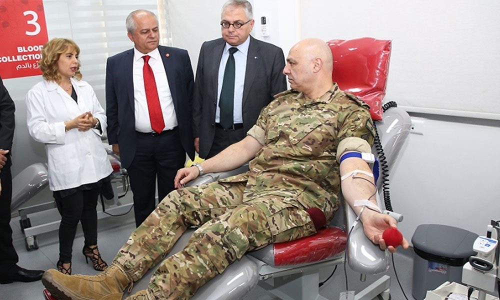 وتبرع العماد عون بالدم دعما لشعار “شركاء بالدم” الذي أطلقه الجيش، حيث أضاف: “نحن نسير أمامكم، لا سيما بعدما رأيناه من مواقفكم إلى جانبنا في أصعب الأيام والظروف من نهر البارد إلى كل المعارك التي خضناها، كنتم دائما السباقين إلى مساعدتنا في إخلاء جرحانا ومصابينا، وإلى الاستجابة لطلباتنا حيثما كنا. إن تضحيتكم أعظم من تضحيتنا، فأنتم تتولون الشق الإنساني البحت الذي يمثل مسيرتكم، عافاكم الله”.