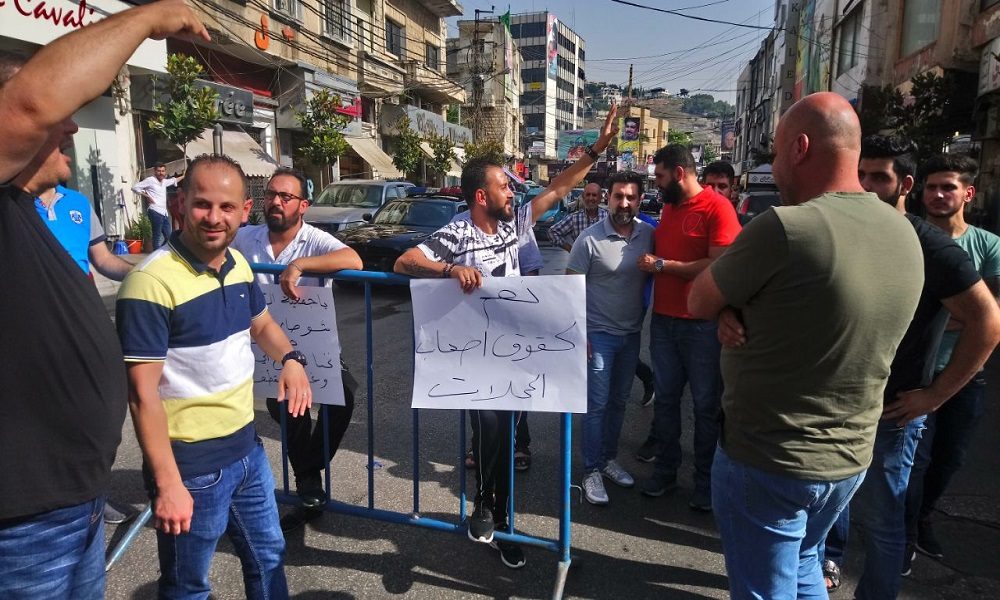 قطع اصحاب المحلات التجارية في الوسط التجاري في مدينة النبطية الطرقات الرئيسية المؤدية للسوق، احتجاجا على السماح لاصحاب البسطات والباعة المتجولين بوضع بضاعتهم امام المحال وفي الشوارع، ما اعتبروه ينعكس سلبا عليهم من حيث التضييق والازدحام الذي يتسببه هذا الاجراء امام هذه المحال ومنع وصول الزبائن اليهم.