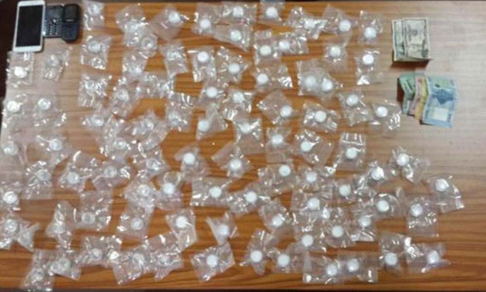 بجرم ترويج مخدرات، وضبط بحوزتهم :55 ظرفاً من مادة الكوكايين، 36 ظرفاً من مادة باز الكوكايين،3 هواتف خلوية ومبالغ مالية”.