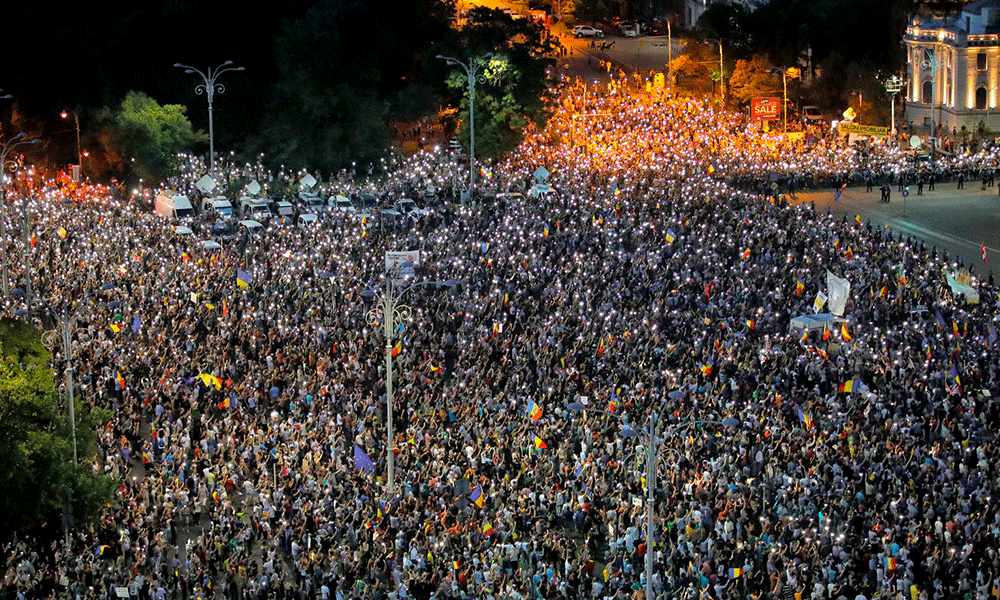 تظاهر عشرات الآلاف من المحتجين ضد الفساد في العاصمة بوخارست والمدن الرئيسية لثاني يوم على التوالي، مطالبين باستقالة حكومة الحزب الاشتراكي الديمقراطي.