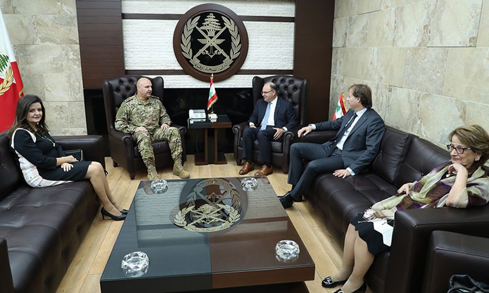 قائد الجيش استقبل قرداحي ووفدا من حملة الازرق الكبير 22 Oct 2018 استقبل قائد الجيش العماد جوزاف عون في مكتبه في اليرزة، الوزير السابق جان لوي قرداحي على رأس وفد مرافق، وتناول البحث الأوضاع العامة. ثم استقبل وفدا من جمعية حملة “الأزرق الكبير” برئاسة نزيه الريّس، وبحث معه في شؤون مختلفة.