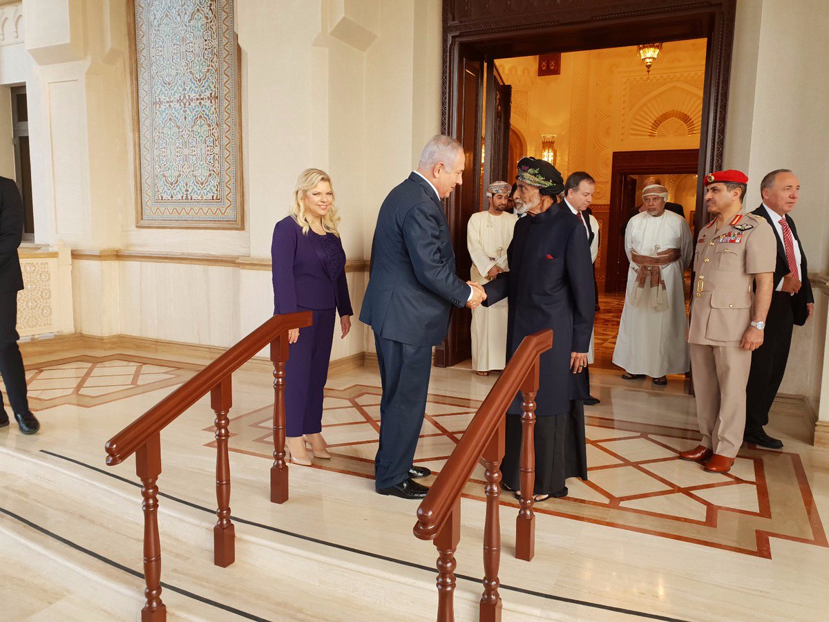كما أعلن الحساب الرسمي لنتنياهو على “تويتر” أنه “عاد إلى البلاد بعد أن قام بزيارة رسمية إلى عمان حيث التقى السلطان قابوس الذي وجّه له دعوة بزيارة السلطنة في ختام اتصالات مطولة بين الطرفين. وبحث رئيس الوزراء مع السلطان قابوس السبل لدفع عملية السلام وقضايا تتعلق بتحقيق السلام والاستقرار بالمنطقة”.