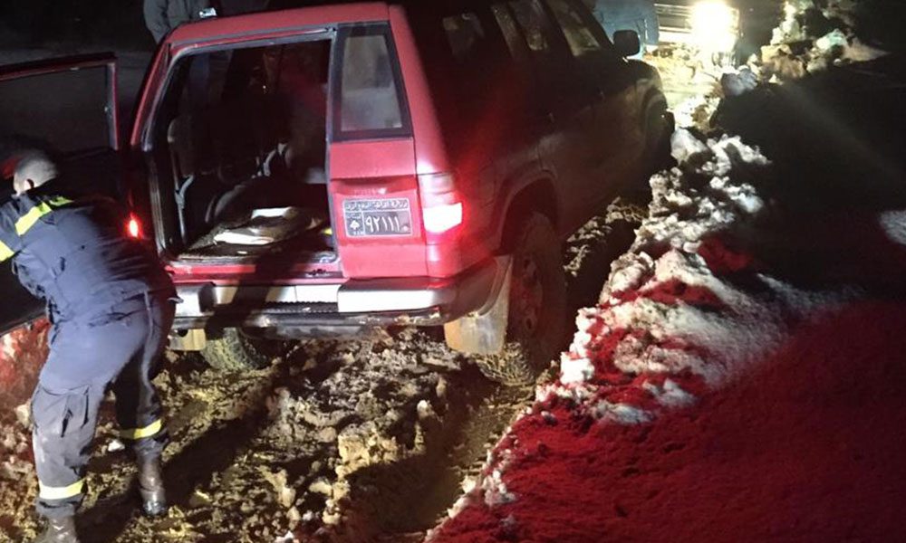 سحب سيارتين علقتا بالوحول بصنين ومواطنين علقوا بالثلوج بكفريا 31 Dec 2018 عملت عناصر الإنقاذ في الدفاع المدني على سحب سيارتين كانتا قد علقتا بالوحول والثلوج قرب محطة إرسال الشيخاني بصنين. كما انتقلت عناصر الإنقاذ إلى جبل كفريا لسحب مواطنين علقوا بالثلوج أيضا.