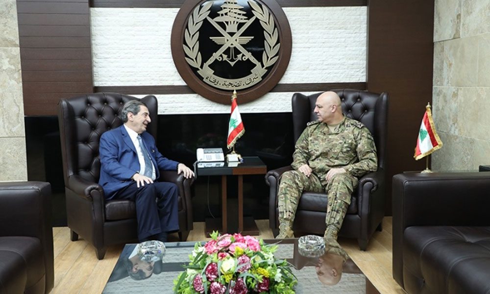 الأوضاع العامة بين قائد الجيش والفرزلي 6 Feb 2019 بحث قائد الجيش العماد جوزيف عون مع نائب رئيس مجلس النواب إيلي الفرزلي في الأوضاع العامة في البلاد. كما استقبل عون الشيخ رياض ضاهر.