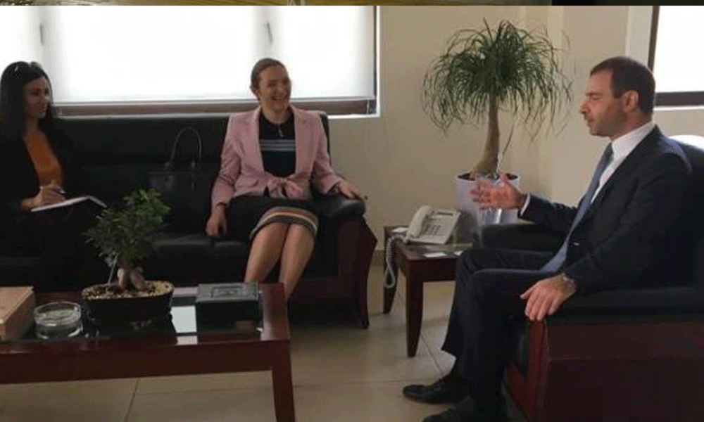 بحث وزير الدولة لشؤون الاستثمار والتكنولوجيا عادل أفيوني، الاثنين، في مكتبه، في الوزارة، مع سفيرة الدنمارك ميرت جول، في زيارة تعارفية، في سبل التعاون بين لبنان والدنمارك في المجال التكنولوجي.