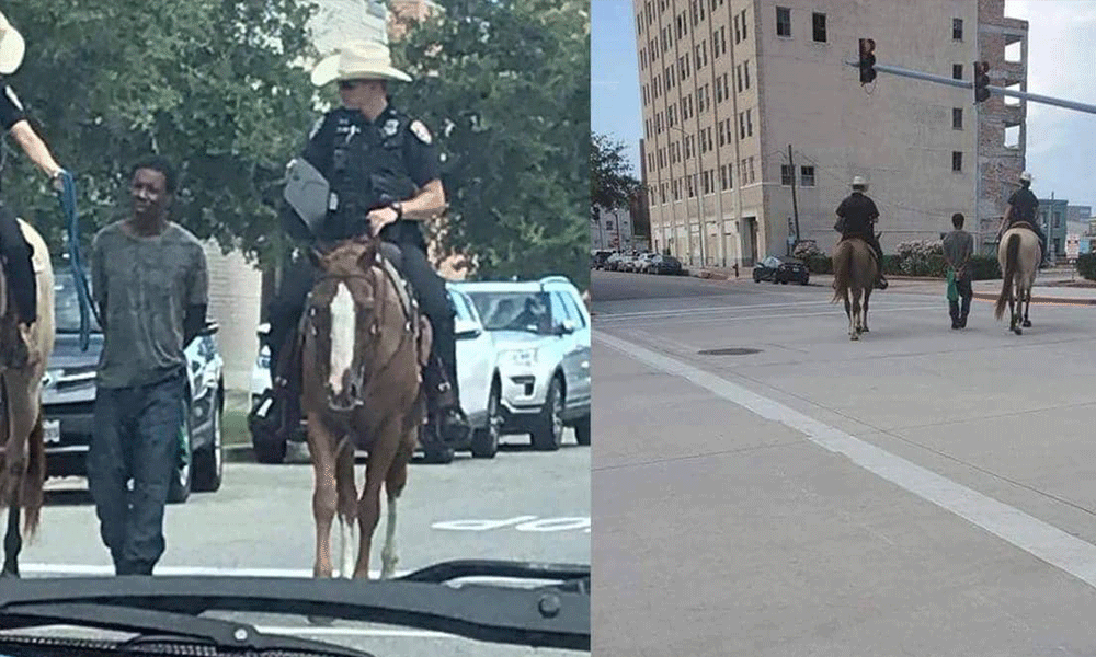 واجهت شرطة تكساس سيلا من الانتقادات الغاضبة، بعد انتشار صور “صادمة”، تظهر ضابطين أميركيين يمتطون الخيل، ويقودان رجلا من أصول أفريقية بحبل.