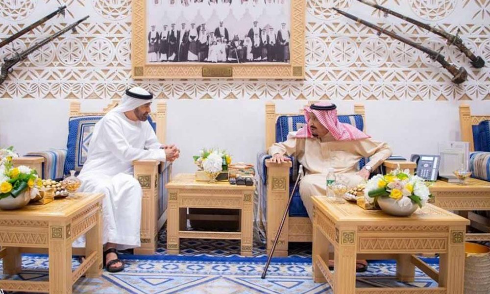استقبل العاهل السعودي الملك سلمان بن عبدالعزيز آل سعود ولي عهد أبوظبي نائب القائد الأعلى للقوات المسلحة بدولة الإمارات، الشيخ محمد بن زايد آل نهيان، في منى، بحضور ولي العهد السعودي الأمير محمد بن سلمان.