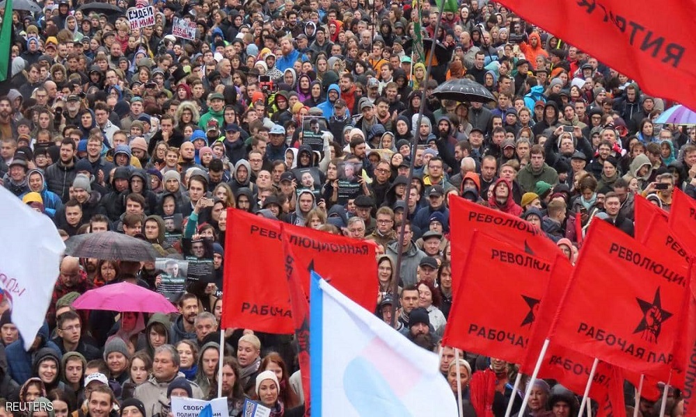 احتشد نحو 20 ألفا من الروس في موسكو للمطالبة بالإفراج عن محتجين اعتقلوا خلال الصيف في إطار ما يقول المعارضون للكرملين إنها حملة لتكميم الأفواه.