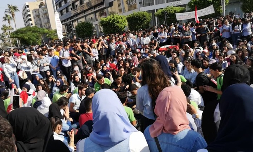 تواصل التحرك الطالبي في مدينة صيدا لليوم الثالث على التوالي، ما بين ساحة ايليا وشوارع المدينة، حيث انطلق الطلاب بتظاهرة حاشدة من مختلف المدارس والمعاهد والجامعات في صيدا وجابت شوارع المدينة، متوقفين أمام مرافق عدة ولا سيما شركة الكهرباء و”أوجيرو” وعدد من المصارف.