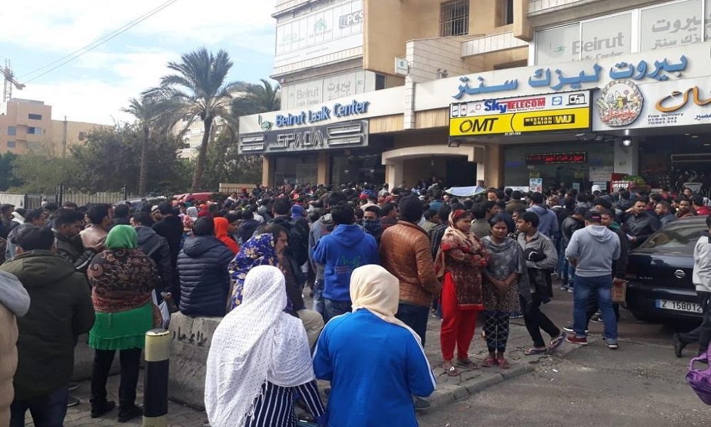 نتيجة تراجع الوضع الاقتصادي في لبنان، وارتفاع سعر صرف الدولار مقابل الليرة اللبنانية وتوقف عدد كبير من الشركات وارباب العمل عن الدفع بالدولار للعمال الاجانب، تهافت عدد كبير من العمال من الجنسية البنغلادشية الى سفارتهم في بئر حسن- بيروت لتسوية اوضاعهم لمغادرة لبنان.