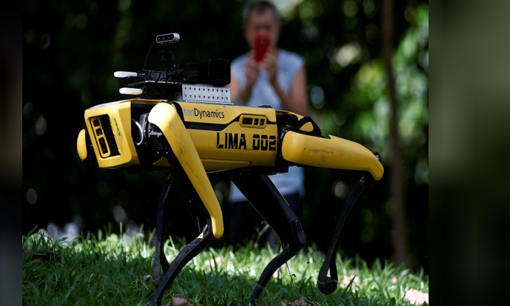 تستخدم السلطات في سنغافورة كلب آلي للمساعدة في الحد من حالات العدوى بفيروس كورونا، إذ يعمل هذا الكلب بالتحكم عن بعد وله أربعة أرجل وهو من تصميم شركة بوسطن ديناميكس.