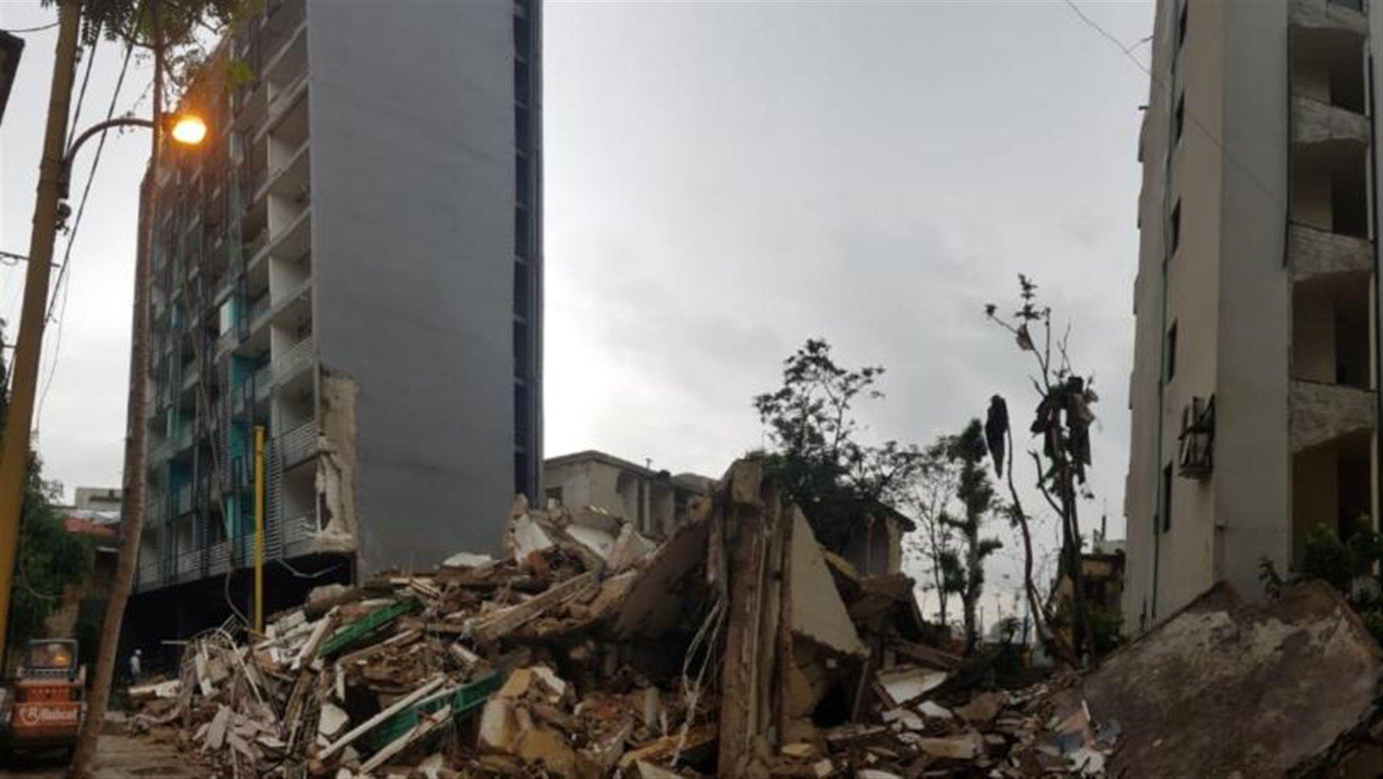 انهار مبنى غير مأهول متضرر من انفجار مرفأ بيروت في منطقة المدور نتيجة تساقط الأمطار الغزيرة.