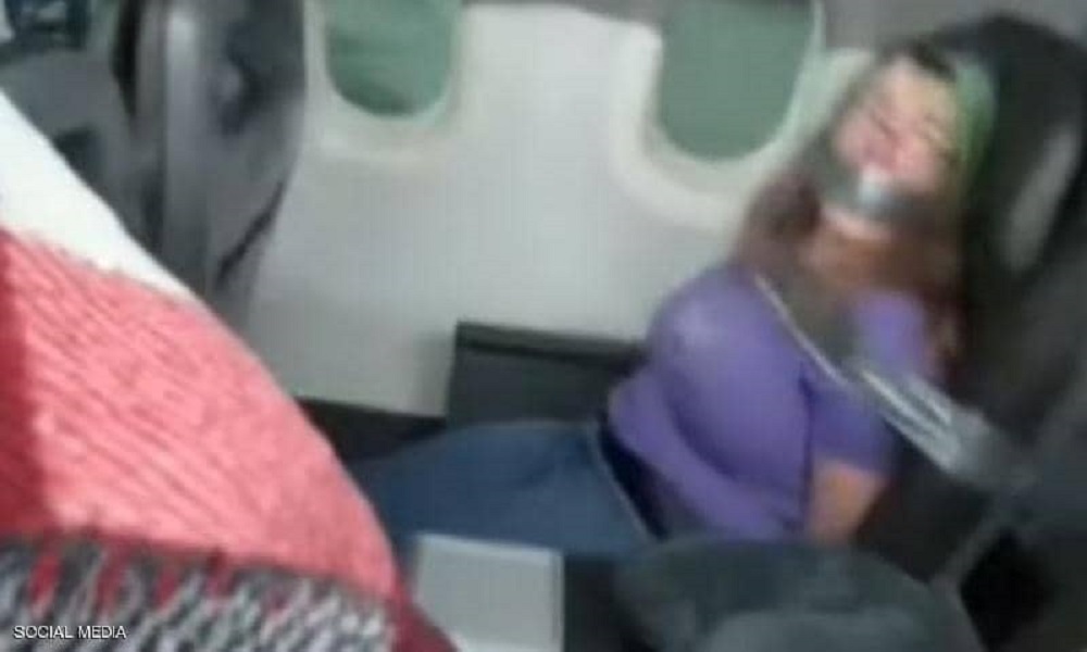 وبعد هبوط الطائرة، كشفت الصور أن راكبة كانت مقيدة في مقعدها بالأشرطة اللاصقة، التي كممت فمها أيضا، وتم الإبقاء عليها في مكانها حتى غادر جميع الركاب، فيما كان طاقم طبي بانتظارها في الخارج.