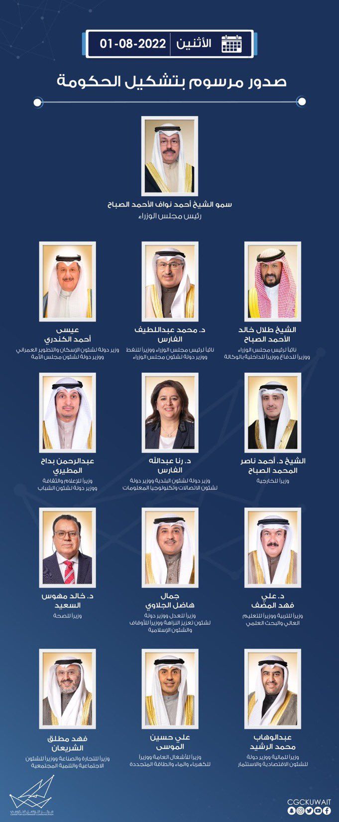 مرسوم أميري يقضي بتشكيل حكومة في الكويت August 1, 2022 01:29 PM وكالات صدر اليوم الإثنين، مرسوم أميري في الكويت، يقضي بتشكيل حكومة جديدة من 12 وزيراً.