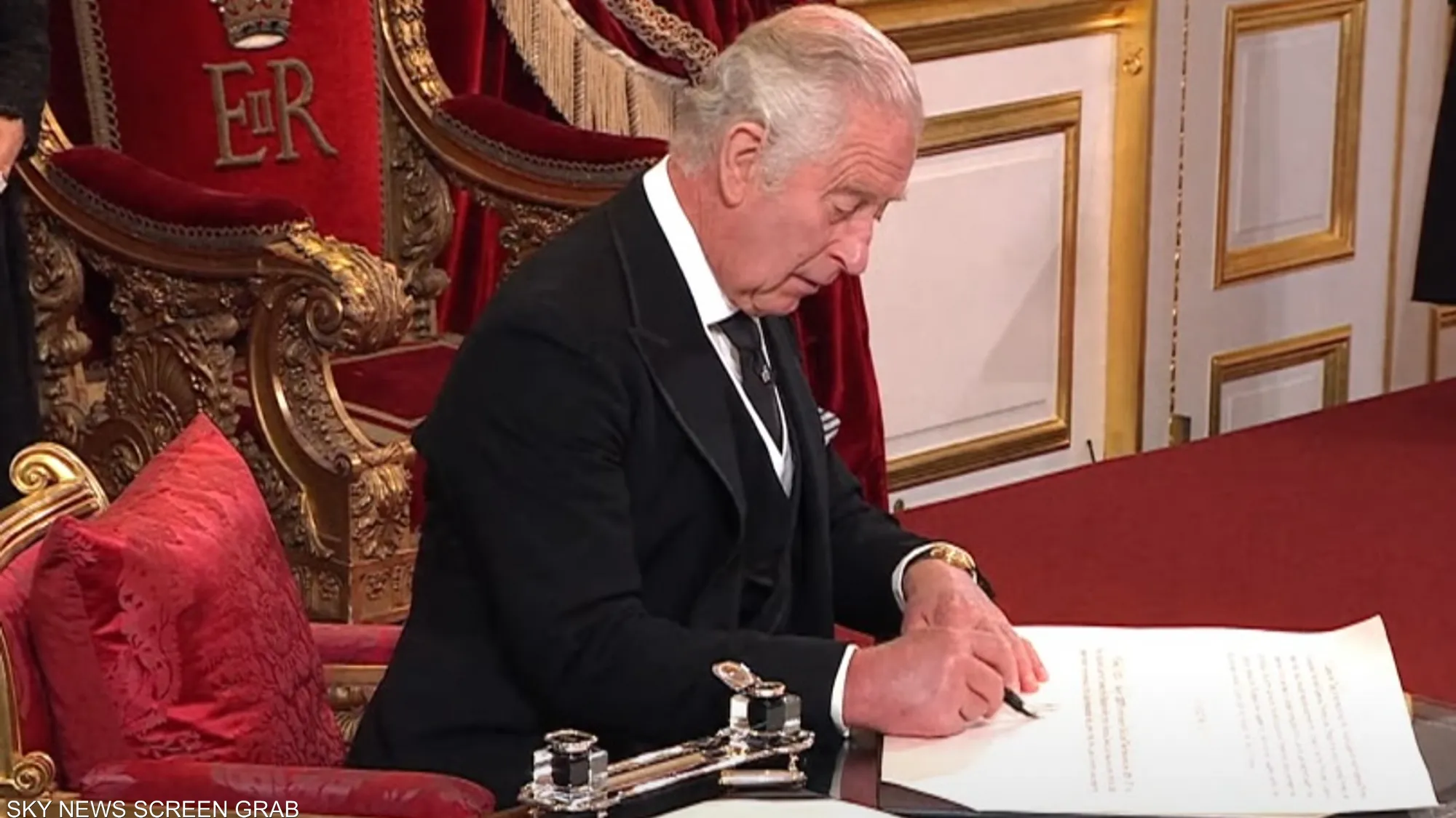 وبعد ذلك، وقع تشارلز الثالث على بيان تنصيبه ملكا على عرش بريطانيا.
